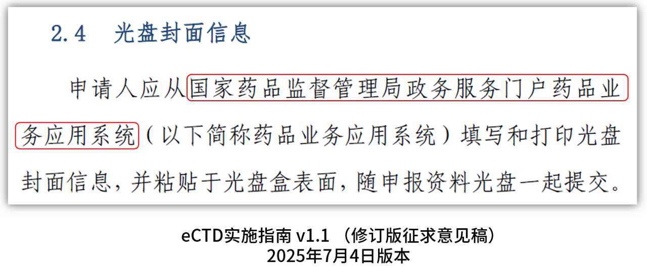 eCTD實施指南 v1.1 (修訂版征求意見稿)中2.4章節將“國家藥品監督管理局網上辦事大廳藥品業務應用系統”調整為“國家藥品監督管理局政務服務門戶藥品業務應用系統”。