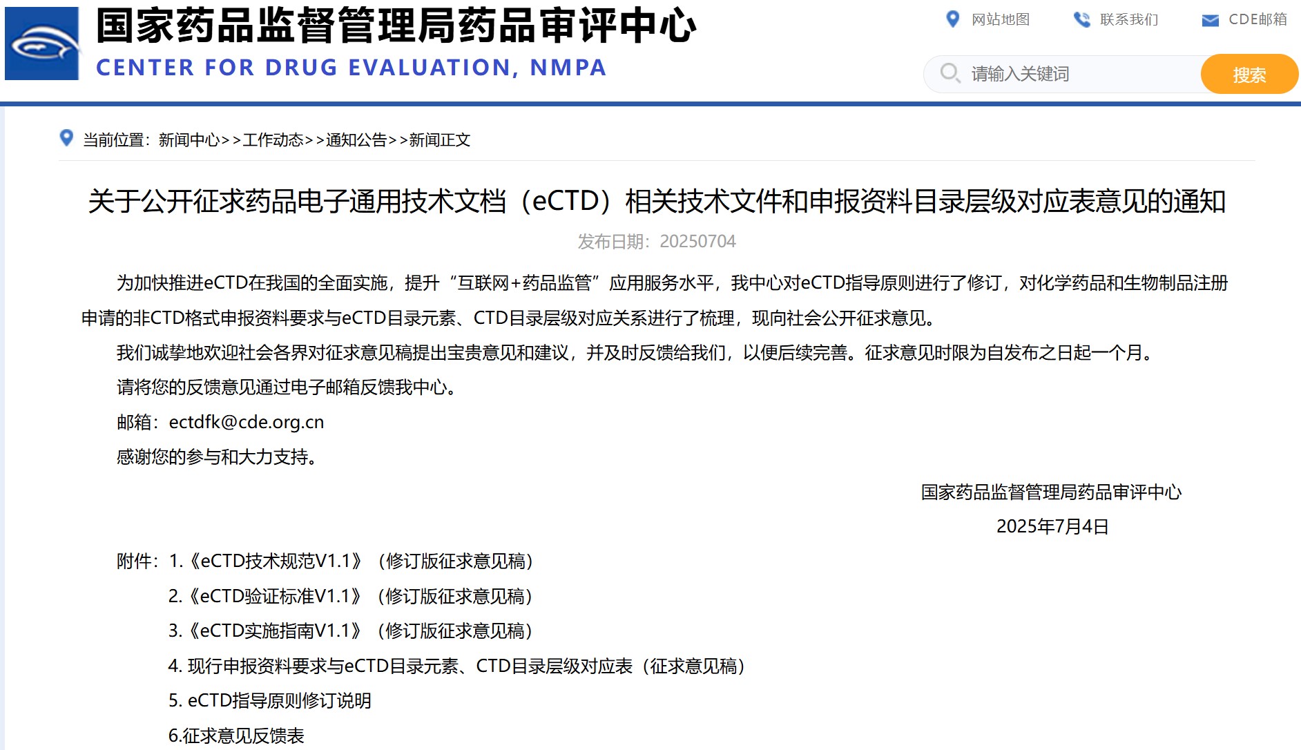 國家藥品監督管理局藥品審評中心(CDE)于2025年7月4日發布《關于公開征求藥品電子通用技術文檔(eCTD)相關技術文件和申報資料目錄層級對應表意見的通知》,標志著中國eCTD技術標準迎來首次技術層面的全面修訂。北京康茂峰科技有限公司eCTD電子提交業務負責人Richard迅速響應,通過“康茂峰醫學翻譯”視頻號對此次更新進行專業解讀,助力行業及時把握政策動向。