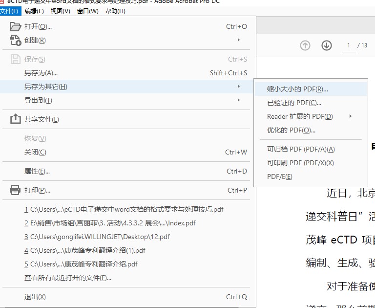 若不是1.4-1.7版本,可以選“文件-另存為其它-優(yōu)化的PDF”,確定后替換原文件,即可保存為符合要求的PDF版本。