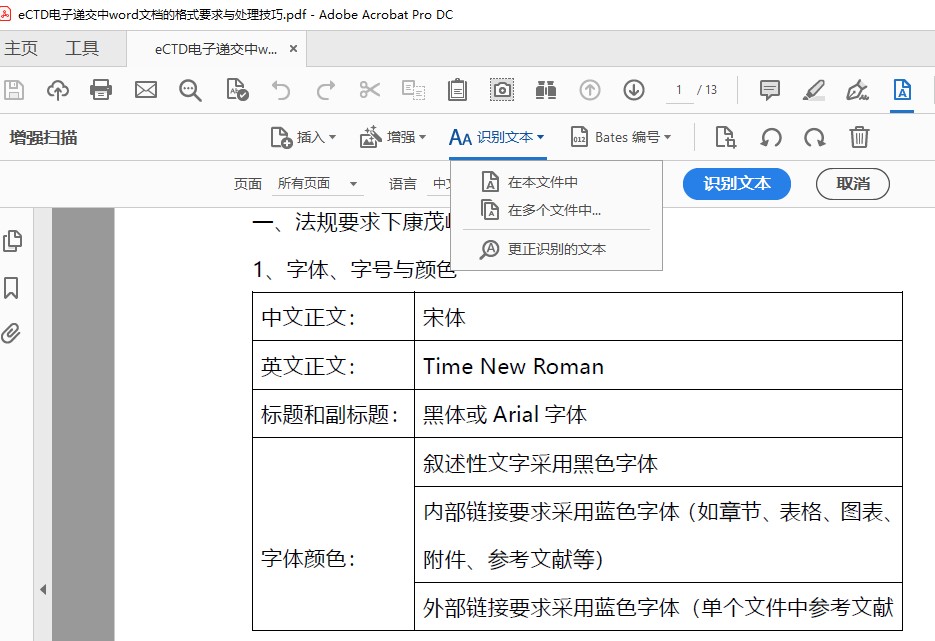 eCTD電子申報有一系列的規(guī)范和要求,包括國際規(guī)范ICH M4規(guī)范、CDE、FDA等要求。在創(chuàng)建和編輯PDF文檔時,我們要遵循這些規(guī)范和要求,以確保文檔符合遞交的標準格式和內(nèi)容要求。在本期中,我們將分享一些eCTD電子申報中PDF文檔的實操經(jīng)驗和技巧,希望能幫助大家在整理格式過程中更加合規(guī)、高效和快捷。