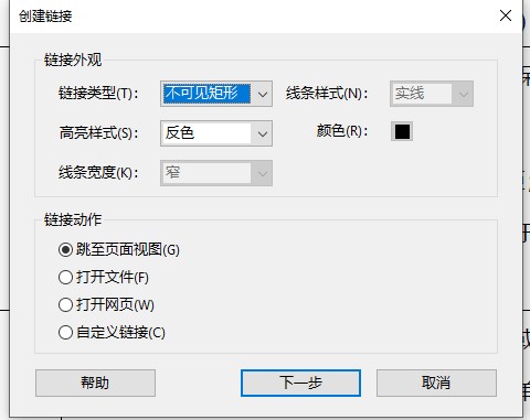 外部鏈接制作與內(nèi)鏈制作步驟部分操作一致,不同之處在于“創(chuàng)建鏈接”提示框中鏈接動作的設(shè)置。有兩種情況,一種是鏈接到某個文件的具體頁面,將“鏈接動作”設(shè)置為“跳至頁面視圖”,點擊下一步,保持“創(chuàng)建至視圖的提示框”然后打開對應(yīng)文件,找到對應(yīng)章節(jié)所在頁面,點擊“設(shè)置鏈接”即可。另一種是只需跳轉(zhuǎn)至該文件,不需要跳轉(zhuǎn)至具體頁面,可以將“鏈接動作”設(shè)置為“打開文件”,選擇對應(yīng)文件,點擊打開,在出現(xiàn)的“指定找開首選項”提示框選擇“新建窗口”,點擊鏈接跳轉(zhuǎn)至該文件時,原文件不會關(guān)閉。