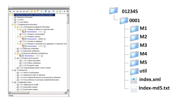 eCTD( Electronic Common Technical Document ),即“藥品電子技術通用文檔”,它是通過可擴展標記語言(XML)技術將基于 CTD 文件結構和 eCTD 技術規范的文件加以組織,并用于藥品注冊申報和審評的一種注冊文件技術格式。完整的 eCTD 體系結構不僅包括一套能夠實現電子申報資料提交、接收、驗證、受理、審評利用和電子存檔的信息化系統,還包括一套既符合國際通用標準,又與區域法律法規有效銜接的技術指南體系。